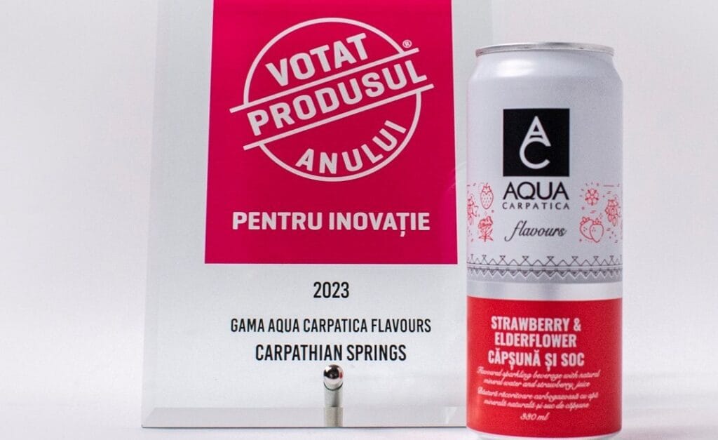AQUA Carpatica Flavours a câștigat votul de încredere al consumatorilor primind distincția Votat Produsul Anului – Pentru Inovatie 2023 în categoria Apă cu arome.