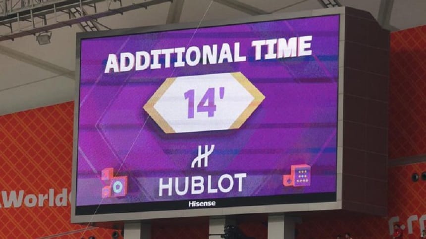 Pe primul loc este prima repriză a meciului Anglia – Iran, cu 13.59 de minute. A doua repriză a partidei este pe locul trei, cu 13.05 minute. Astfel, totalul prelungirilor de la partida de luni a fost de aproape jumătate de oră. Meciul a durat 117 minute şi 16 secunde.