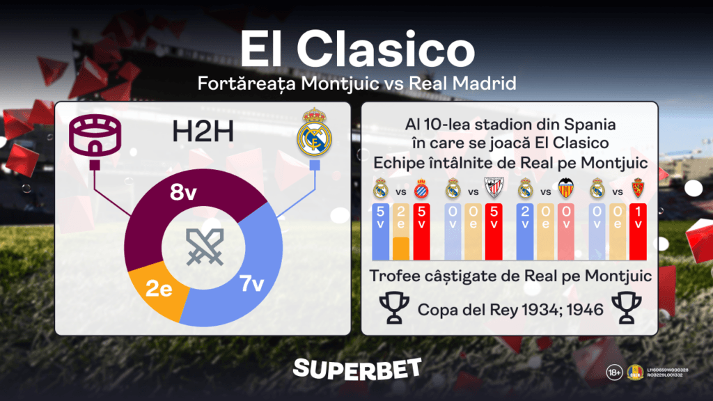 În prima partidă disputată aici de Barcelona în acest sezon, contra lui Cadiz, catalanii s-au impus cu 2-0. El Clasico va fi a 24-a dispută all-time pe care formația blaugrana o joacă pe Stadionul Olimpic. Până să le devină casă în actualul episod din La Liga, au mai avut doar 4 partide aici pe post de echipă gazdă. Din 1997 până în 2009, Espanyol juca meciurile de acasă pe acest stadion.