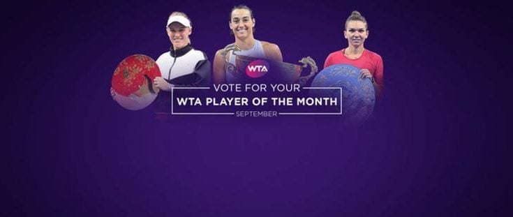Simona Halep, locul 1 WTA, a fost nominalizată de WTA la titlul de jucătoarea lunii septembrie, alături de sportiva franceză Caroline Garcia, locul 9 WTA, şi de daneza Caroline Wozniacki, locul 6 WTA.