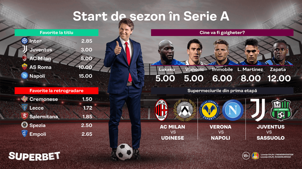 În noul sezon, cei doi favoriţi sunt Romelu Lukaku, revenit sub formă de împrumut la Inter şi Dusan Vlahovic, care începe primul sezon întreg la Juventus. Ambii au primit cota 5.00 în oferta de pariuri antepost Superbet, în timp ce Immobile are cota 6.00.