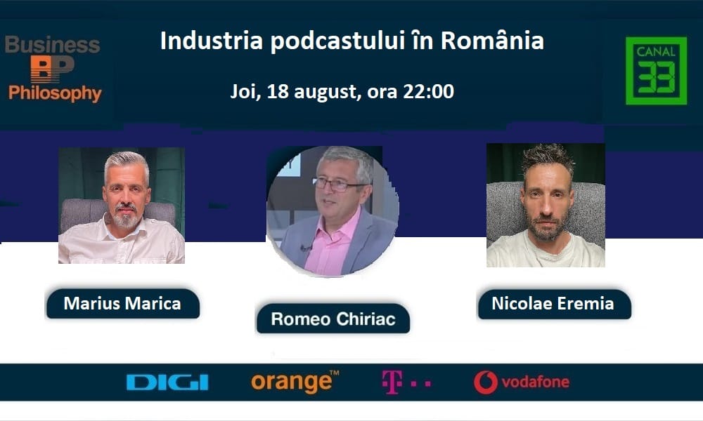 Emisiunea Business Philosophy de la Canal 33, programată joi, 18 august, de la ora 22:00, va avea ca temă „Industria podcastului în România”.