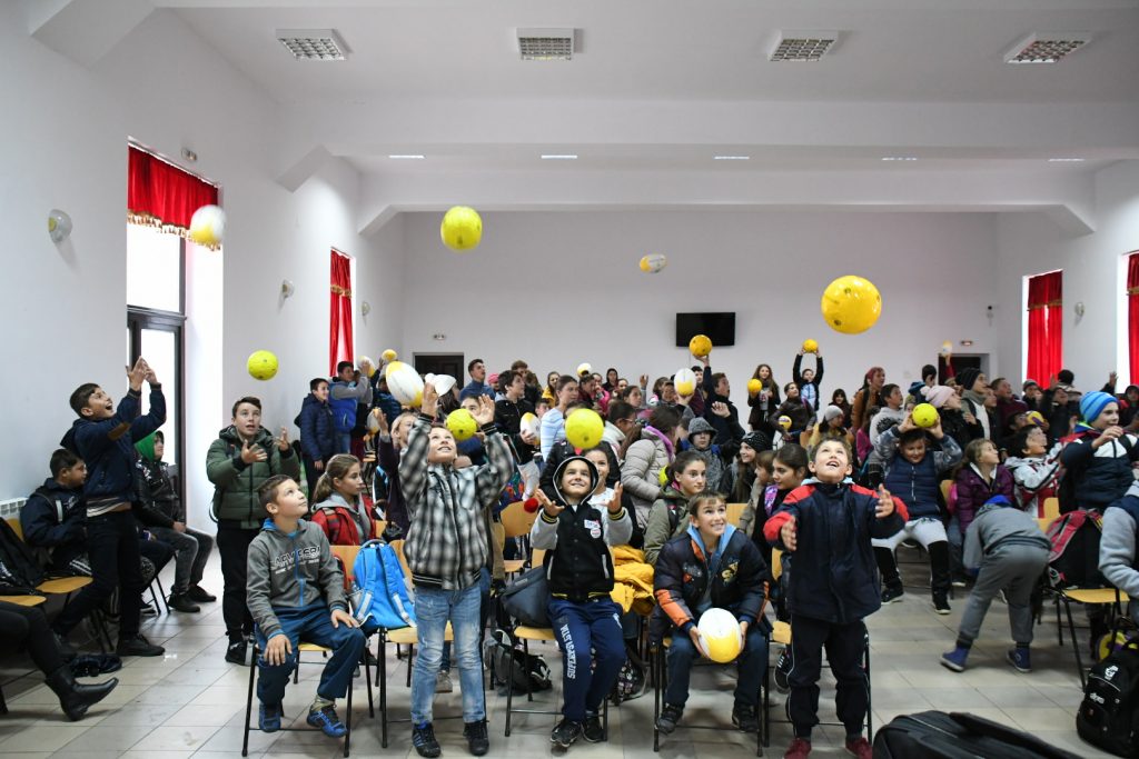 Copiii şcolilor din comuna Bârla (judeţul Argeş) au primit seturi de mingi în cadrul unei acţiuni a Fundaţiei Alexandrion.