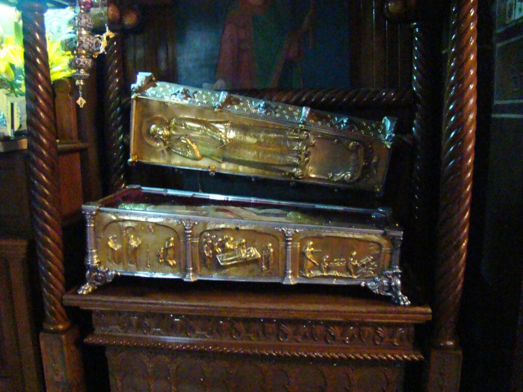 Sfânta Filofteia a fost o fată de sărman. S-a făcut sfântă pentru faptele sale cele bune și caritabile. Ea era trimisă de tatăl său cu vitele la pășune. În cale întâlni un cerșetor, care-i ceru milă. Fetița-i dete de pe ea hăinuța și o bucată de pâine. Altă dată mamă-sa o trimise cu mâncare la tată-său, ce ara cu plugul în țarină, să-i ducă merinde pentru prânz. Pe drum ea a împărțit mâncarea săracilor și a dus tatălui său puțină. Acesta, de necaz că nu i-a adus mâncare îndestulătoare, a azvârlit cu o bardă după fată, a ajuns-o într-un picior și a tăiat-o. Fata de atunci a murit, iar corpul său s-a făcut moaște, devenind sfânt pentru faptele cele bune din viață. Este conservat la Biserica Episcopalăde la Curtea de Argeș.