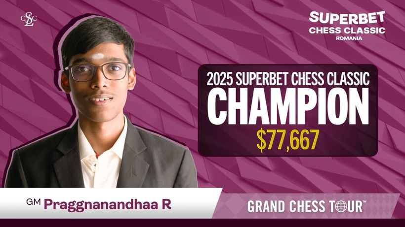 “După o luptă captivantă în trei, Maxime Vachier-Lagrave, Alireza Firouzja şi Praggnanandhaa, titlul a fost decis în meciuri de baraj blitz. Pragg şi-a păstrat calmul şi l-a învins pe MVL în partida finală, asigurându-şi o victorie binemeritată. O performanţă strălucită sub presiune din partea lui Pragg!”, se arată pe pagina de Facebook Grand Chess Tour.