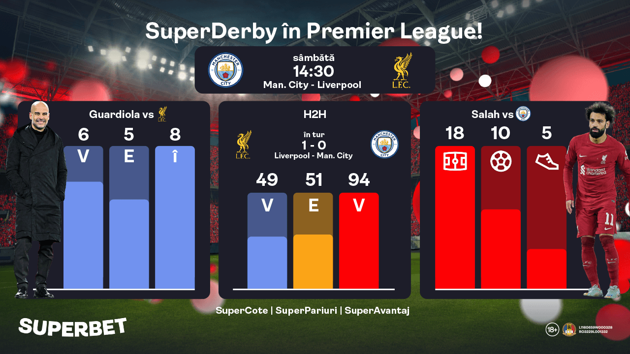 La Superbet, derby-ul Manchester City – Liverpool beneficiază de SuperCoteSuperPariuri și Pariuri SpecialeDescoperă oferta completă și alege-ți favorita!