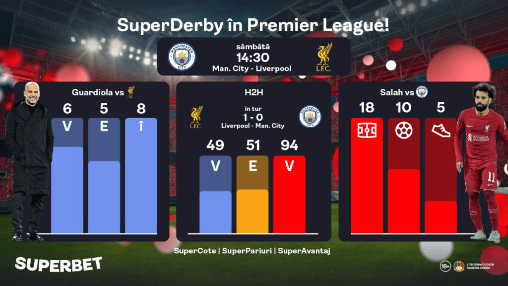 La Superbet, derby-ul Manchester City – Liverpool beneficiază de SuperCote, SuperPariuri și Pariuri Speciale. Descoperă oferta completă și alege-ți favorita!