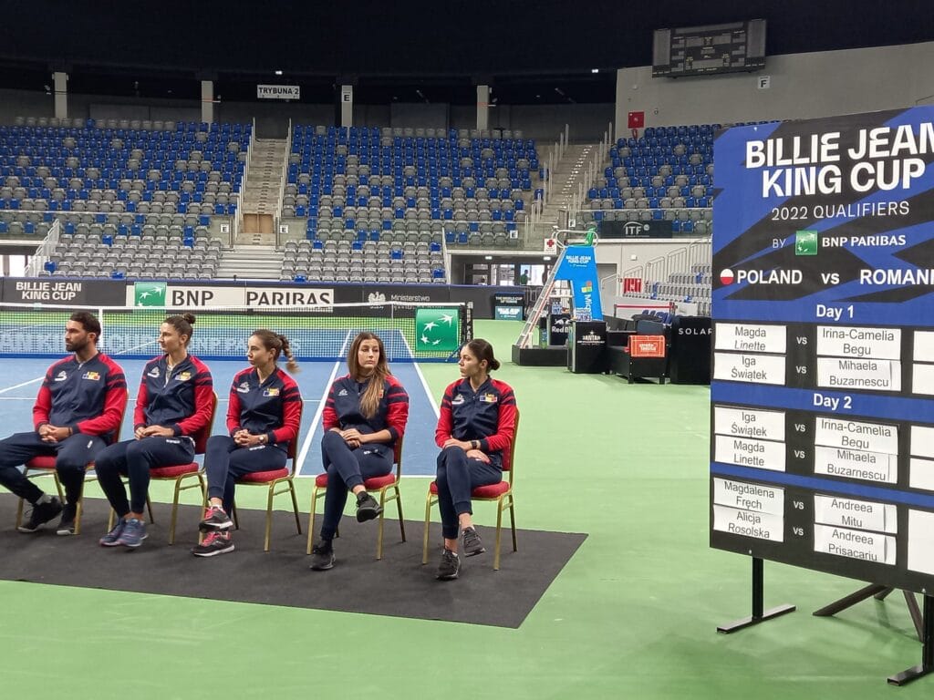 Irina Camelia Begu, nr 1 România, intră prima pe teren, vineri, de la ora 14, pentru a juca împotriva nr. 2 din Polonia, Magda Linette, în calificările dintre reprezentativa triocloră și selecționata similară a Poloniei din Billie Jean King Cup 2022.