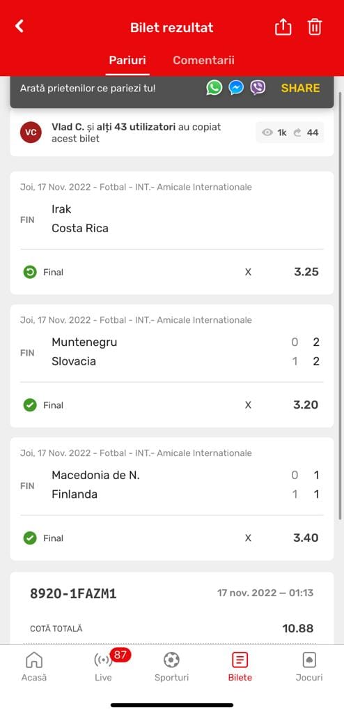 Puteți câștiga și voi multiplicând biletele mele de aici: https://sport.superbet.ro/MK895df6skmY8i7g9