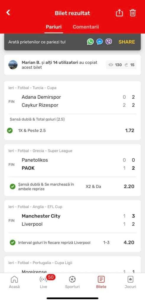 Superbilet câștigător în SuperSocial, marca Romeo Chiriac – Pontul Verde