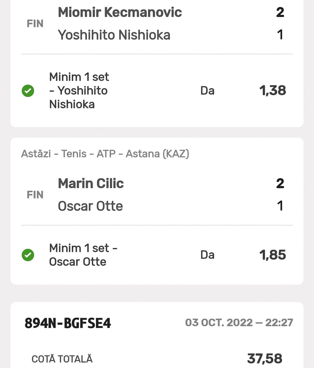 💰Altul luat! Tot pe tenis, daca la fotbal ies numai balauri pe cupele astea. Dupa cel de zilele trecute, iata ca fulgerul mai loveste si el cu repetitie. Vreo 100 de oameni merg la casierie. 😀 Am mai pus ceva similar. Gasiti pe contul meu din aplicatie, la acest link. Doamne ajuta! ✌️ PS. Merci, Cilic! 😅